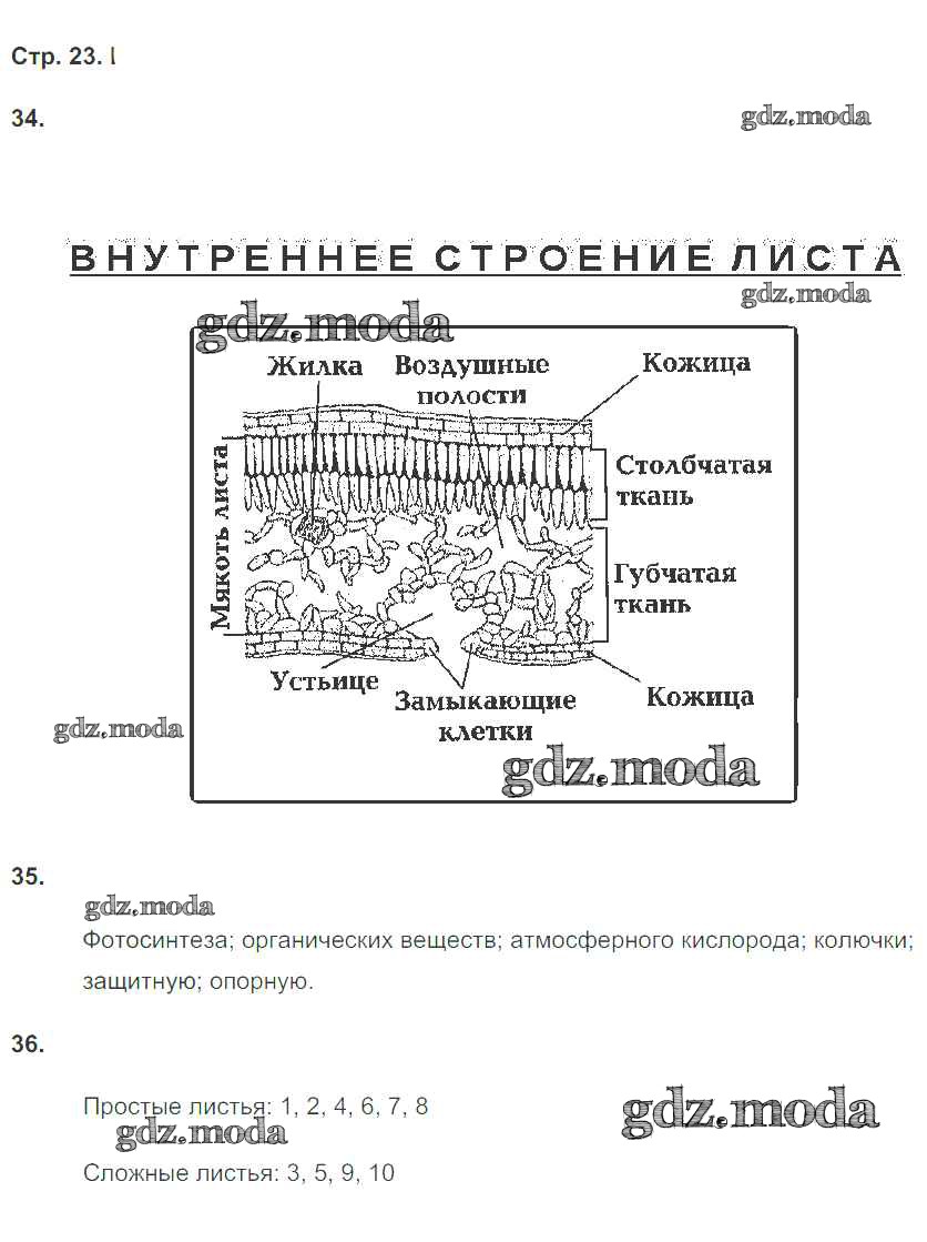 ГДЗ решение к заданию № 23 Биология 6 класс рабочая тетрадь Сонин Н.И. Дрофа 2020 ФГОС бесплатно на гдз.мода!