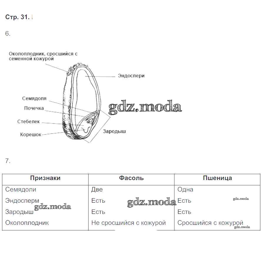 ГДЗ решение к заданию № 31 Биология 6 класс рабочая тетрадь Сонин Н.И. Дрофа 2020 ФГОС бесплатно на гдз.мода!