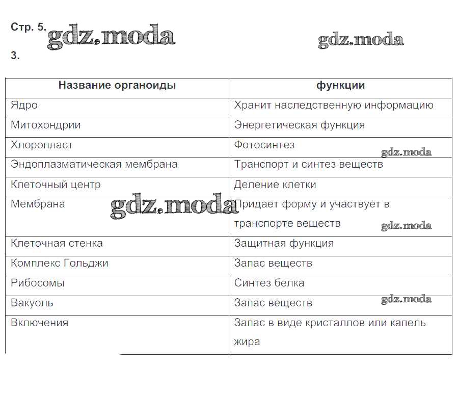 ГДЗ решение к заданию № 5 Биология 6 класс рабочая тетрадь Сонин Н.И. Дрофа 2020 ФГОС бесплатно на гдз.мода!