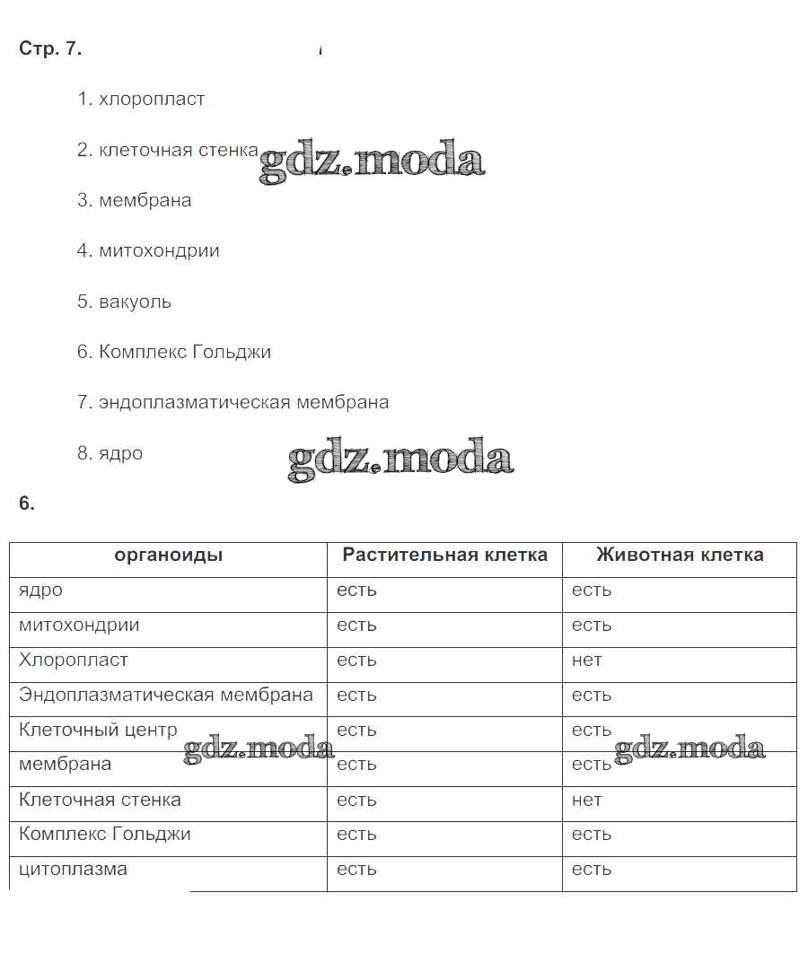 ГДЗ решение к заданию № 7 Биология 6 класс рабочая тетрадь Сонин Н.И. Дрофа 2020 ФГОС бесплатно на гдз.мода!