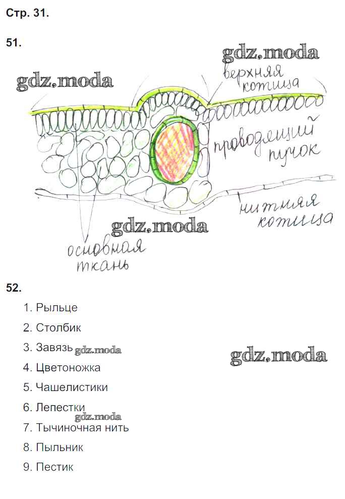 ГДЗ решение к заданию № 31 Биология 6 класс рабочая тетрадь Сонин Н.И. Дрофа 2017 ФГОС бесплатно на гдз.мода!