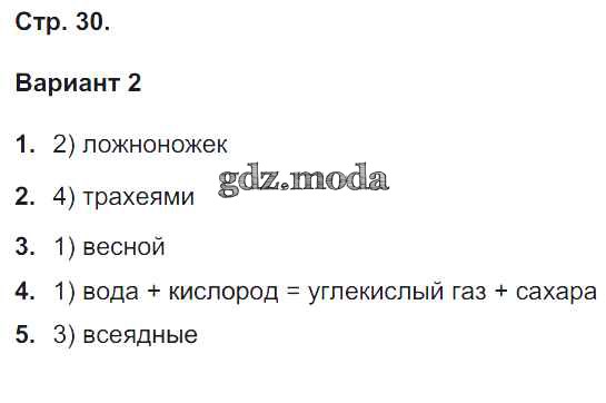ГДЗ решение к заданию № 30 Биология 5-6 класс тетрадь-экзаменатор Сухорукова Л.Н. Просвещение 2017 ФГОС бесплатно на гдз.мода!