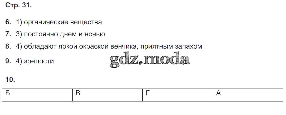 ГДЗ решение к заданию № 31 Биология 5-6 класс тетрадь-экзаменатор Сухорукова Л.Н. Просвещение 2017 ФГОС бесплатно на гдз.мода!