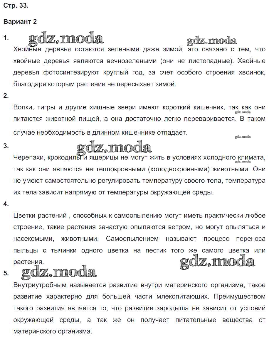 ГДЗ решение к заданию № 33 Биология 5-6 класс тетрадь-экзаменатор Сухорукова Л.Н. Просвещение 2017 ФГОС бесплатно на гдз.мода!