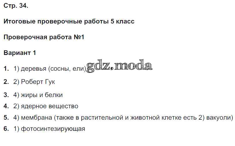 ГДЗ решение к заданию № 34 Биология 5-6 класс тетрадь-экзаменатор Сухорукова Л.Н. Просвещение 2017 ФГОС бесплатно на гдз.мода!