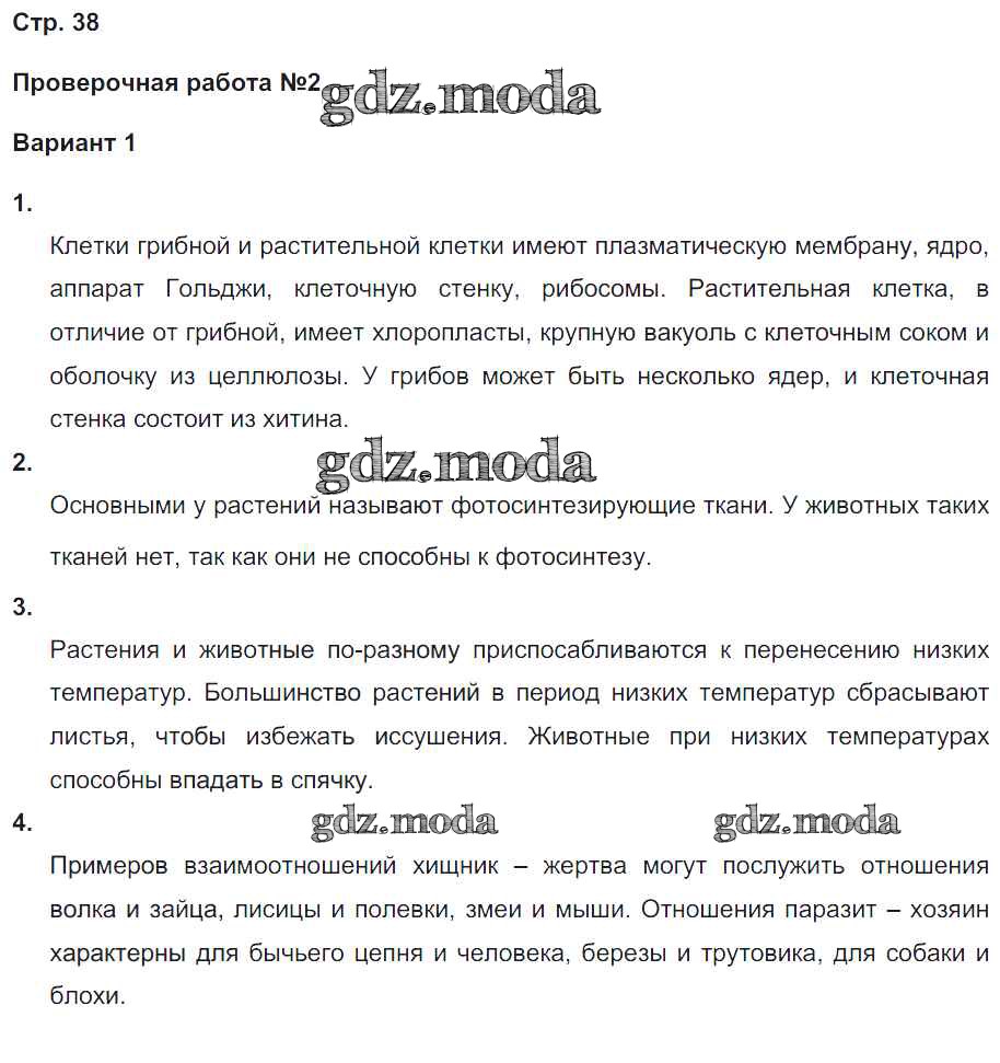ГДЗ решение к заданию № 38 Биология 5-6 класс тетрадь-экзаменатор Сухорукова Л.Н. Просвещение 2017 ФГОС бесплатно на гдз.мода!