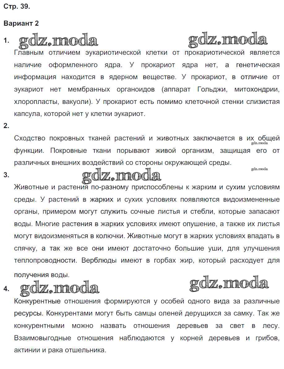 ГДЗ решение к заданию № 39 Биология 5-6 класс тетрадь-экзаменатор Сухорукова Л.Н. Просвещение 2017 ФГОС бесплатно на гдз.мода!