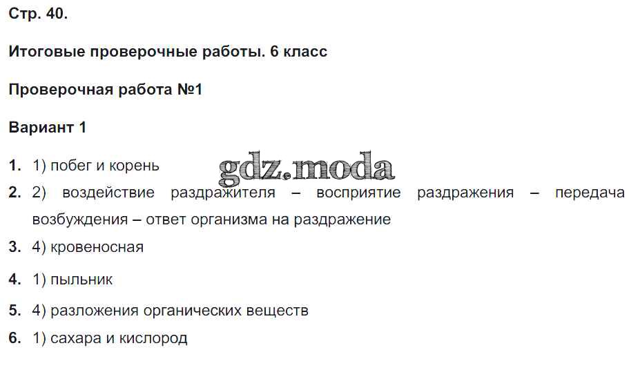 ГДЗ решение к заданию № 40 Биология 5-6 класс тетрадь-экзаменатор Сухорукова Л.Н. Просвещение 2017 ФГОС бесплатно на гдз.мода!
