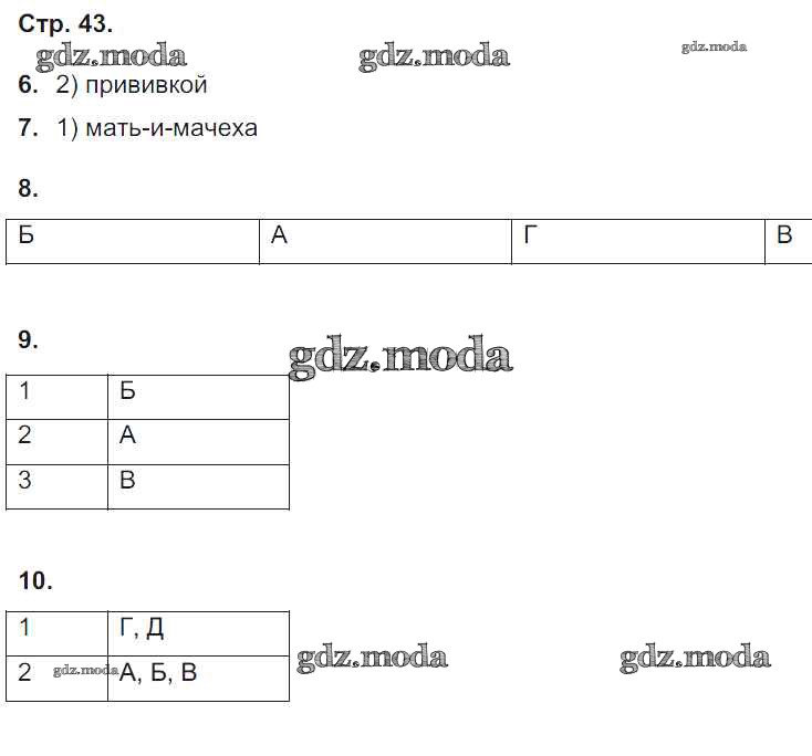 ГДЗ решение к заданию № 43 Биология 5-6 класс тетрадь-экзаменатор Сухорукова Л.Н. Просвещение 2017 ФГОС бесплатно на гдз.мода!