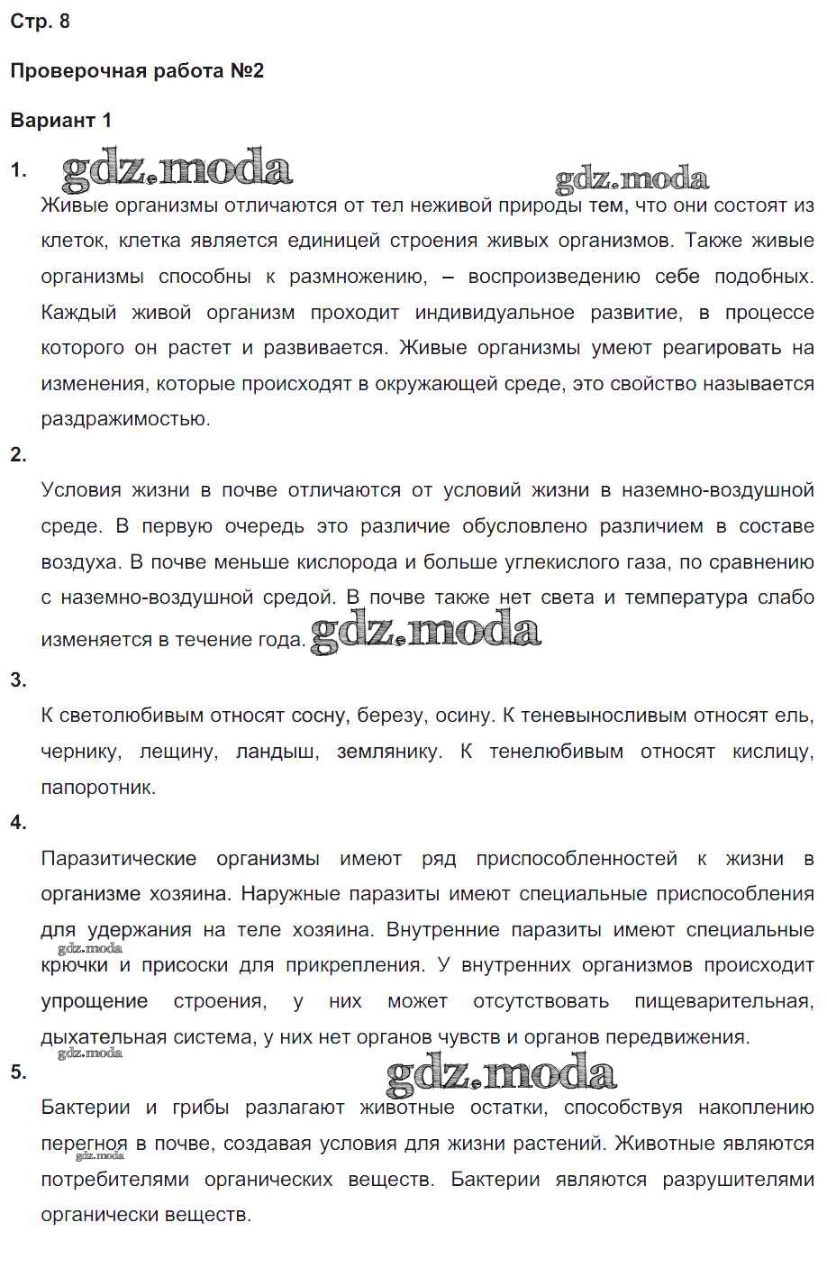 ГДЗ решение к заданию № 8 Биология 5-6 класс тетрадь-экзаменатор Сухорукова Л.Н. Просвещение 2017 ФГОС бесплатно на гдз.мода!