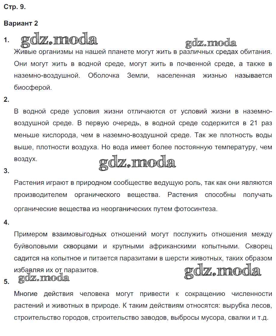 ГДЗ решение к заданию № 9 Биология 5-6 класс тетрадь-экзаменатор Сухорукова Л.Н. Просвещение 2017 ФГОС бесплатно на гдз.мода!