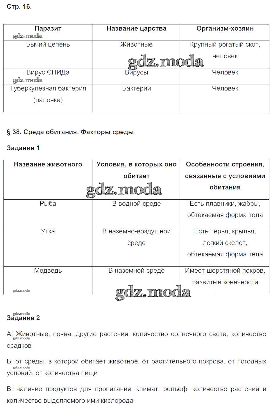 ОТВЕТ на задание № 16 Рабочая тетрадь по Биологии 5-6 класс Сухова Алгоритм успеха