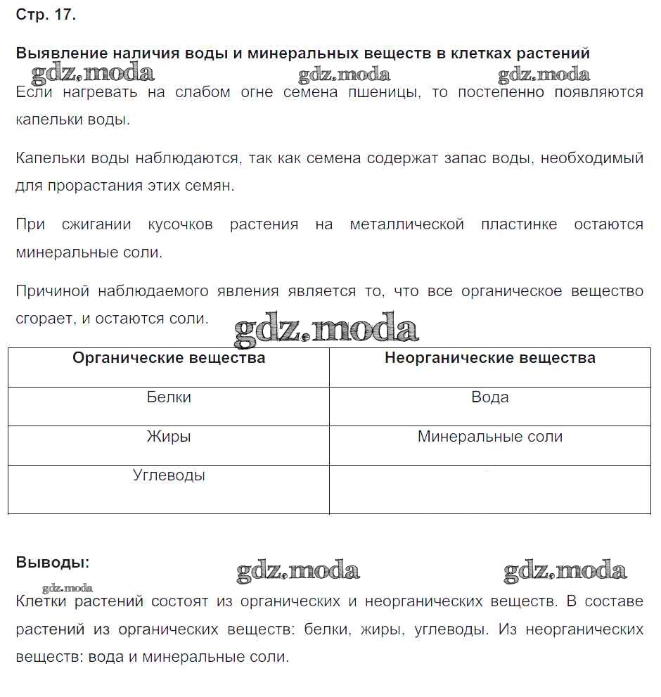 ГДЗ решение к заданию № 17 Биология 5-6 класс тетрадь-практикум Сухорукова Л.Н. Просвещение 2019 ФГОС бесплатно на гдз.мода!
