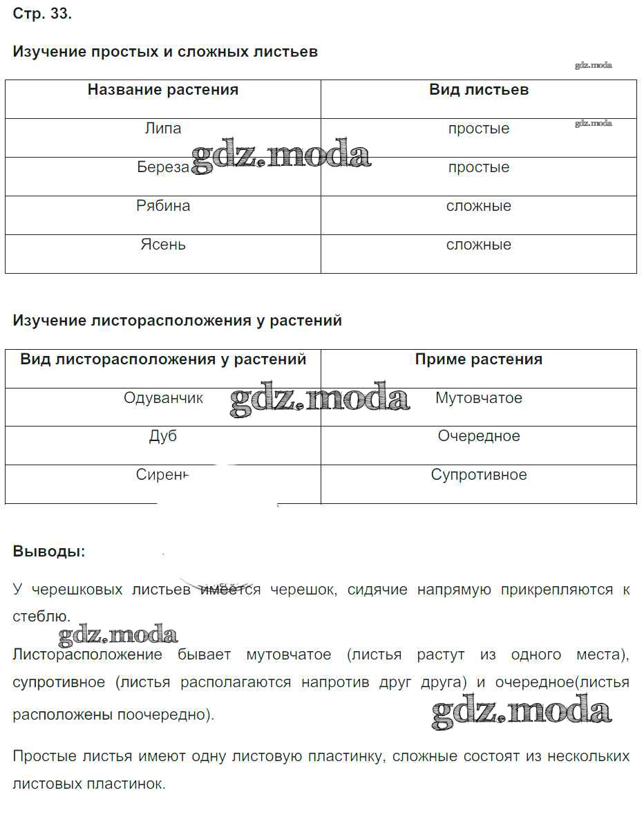 ГДЗ решение к заданию № 33 Биология 5-6 класс тетрадь-практикум Сухорукова Л.Н. Просвещение 2019 ФГОС бесплатно на гдз.мода!