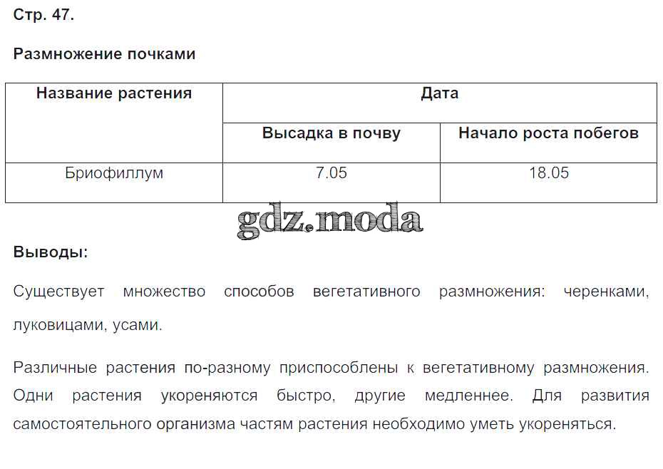 ГДЗ решение к заданию № 47 Биология 5-6 класс тетрадь-практикум Сухорукова Л.Н. Просвещение 2019 ФГОС бесплатно на гдз.мода!