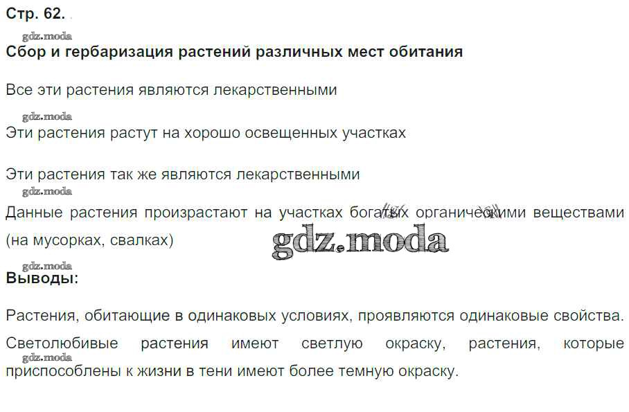 ГДЗ решение к заданию № 62 Биология 5-6 класс тетрадь-практикум Сухорукова Л.Н. Просвещение 2019 ФГОС бесплатно на гдз.мода!