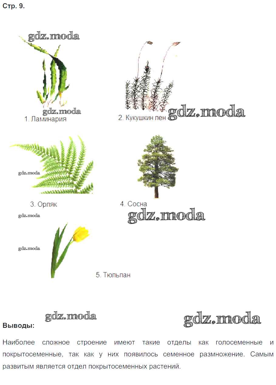 ГДЗ решение к заданию № 9 Биология 5-6 класс тетрадь-практикум Сухорукова Л.Н. Просвещение 2019 ФГОС бесплатно на гдз.мода!