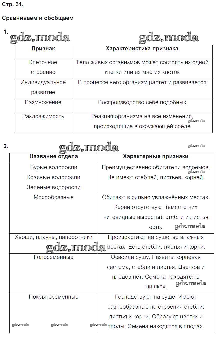 ГДЗ решение к заданию № 31 Биология 5-6 класс тетрадь-тренажер Сухорукова Л.Н. Просвещение 2016 Часть 1, Часть 2 ФГОС бесплатно на гдз.мода!