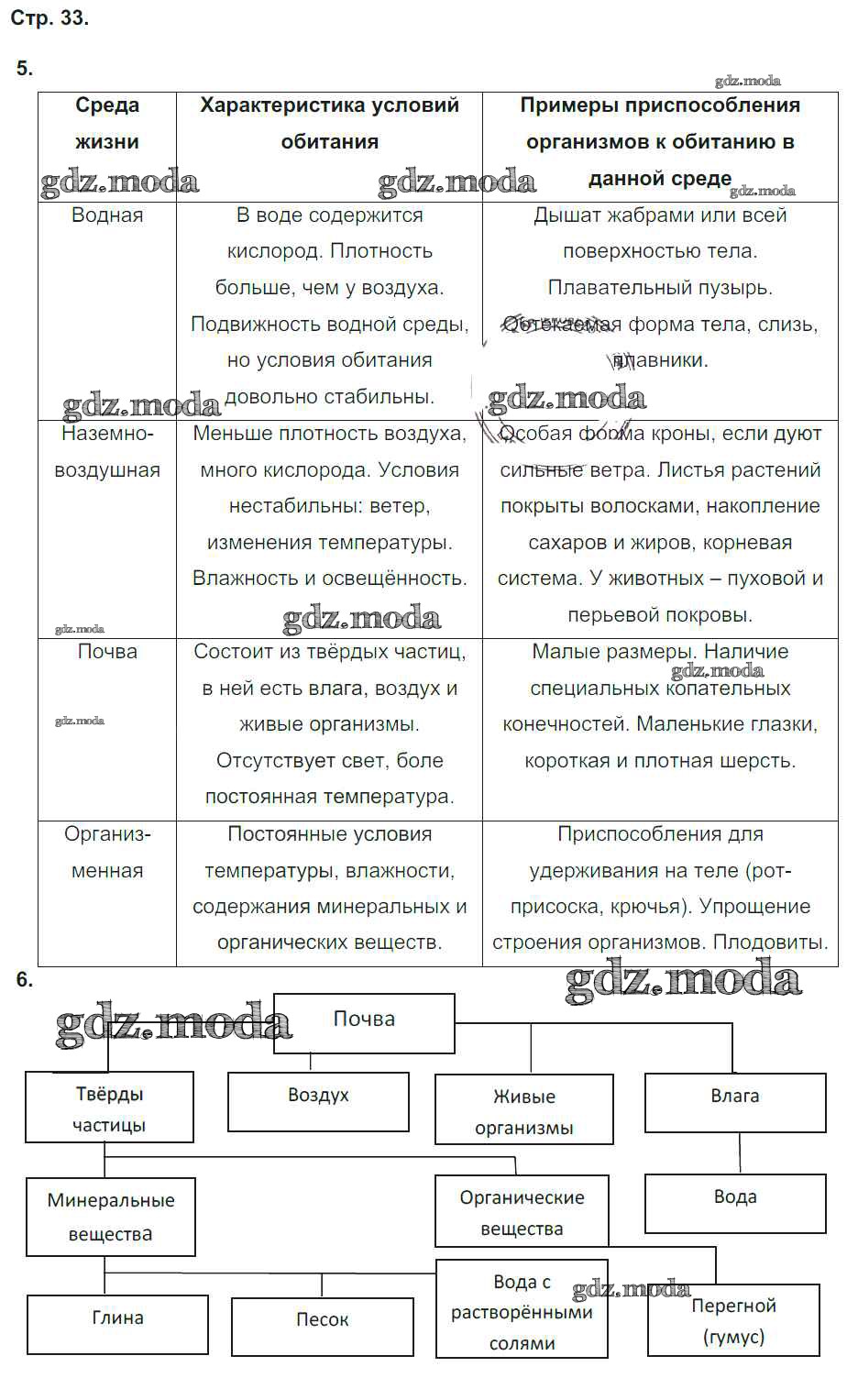 ГДЗ решение к заданию № 33 Биология 5-6 класс тетрадь-тренажер Сухорукова Л.Н. Просвещение 2016 Часть 1, Часть 2 ФГОС бесплатно на гдз.мода!