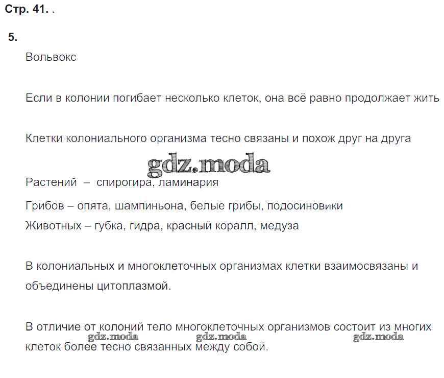 ГДЗ решение к заданию № 41 Биология 5-6 класс тетрадь-тренажер Сухорукова Л.Н. Просвещение 2016 Часть 1, Часть 2 ФГОС бесплатно на гдз.мода!