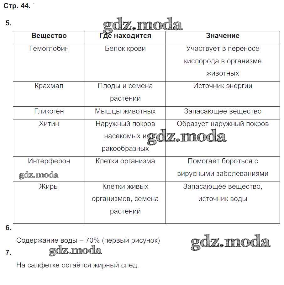 ГДЗ решение к заданию № 44 Биология 5-6 класс тетрадь-тренажер Сухорукова Л.Н. Просвещение 2016 Часть 1, Часть 2 ФГОС бесплатно на гдз.мода!
