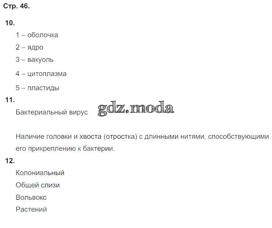 ГДЗ решение к заданию № 46 Биология 5-6 класс тетрадь-тренажер Сухорукова Л.Н. Просвещение 2016 Часть 1, Часть 2 ФГОС бесплатно на гдз.мода!