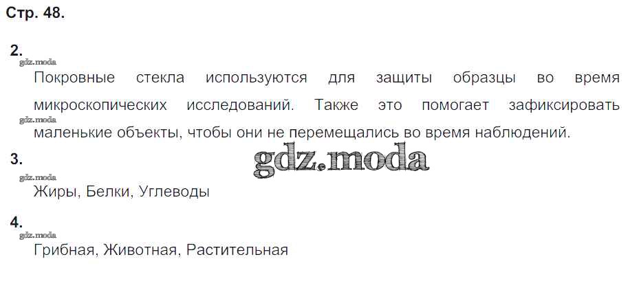 ГДЗ решение к заданию № 48 Биология 5-6 класс тетрадь-тренажер Сухорукова Л.Н. Просвещение 2016 Часть 1, Часть 2 ФГОС бесплатно на гдз.мода!