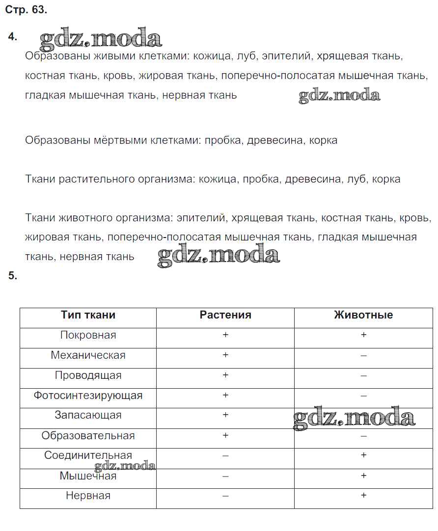 ГДЗ решение к заданию № 63 Биология 5-6 класс тетрадь-тренажер Сухорукова Л.Н. Просвещение 2016 Часть 1, Часть 2 ФГОС бесплатно на гдз.мода!