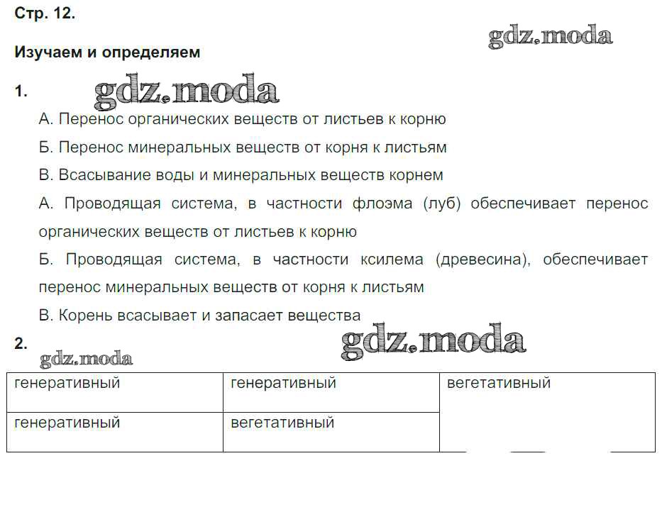 ГДЗ решение к заданию № 12 Биология 5-6 класс тетрадь-тренажер Сухорукова Л.Н. Просвещение 2016 Часть 1, Часть 2 ФГОС бесплатно на гдз.мода!