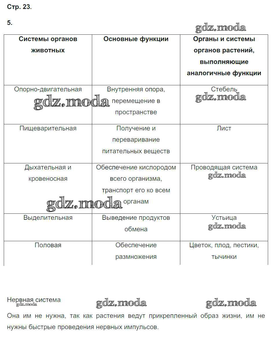 ГДЗ решение к заданию № 23 Биология 5-6 класс тетрадь-тренажер Сухорукова Л.Н. Просвещение 2016 Часть 1, Часть 2 ФГОС бесплатно на гдз.мода!