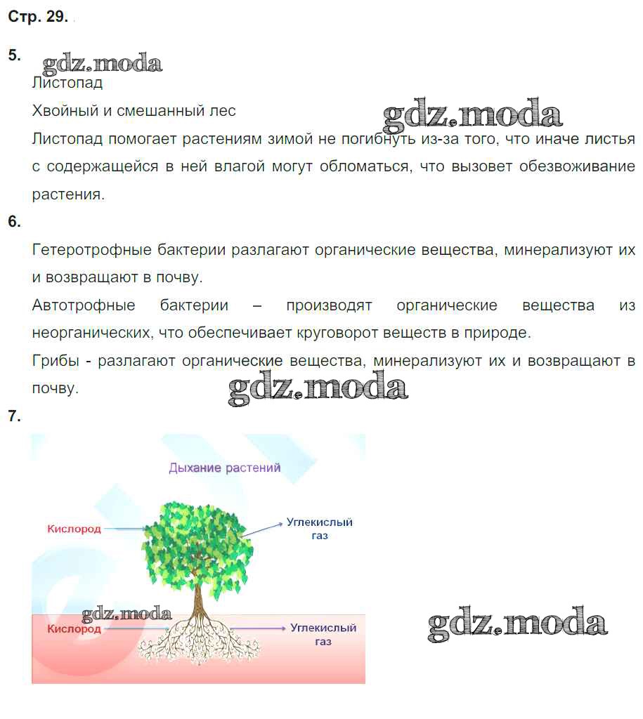 ГДЗ решение к заданию № 29 Биология 5-6 класс тетрадь-тренажер Сухорукова Л.Н. Просвещение 2016 Часть 1, Часть 2 ФГОС бесплатно на гдз.мода!