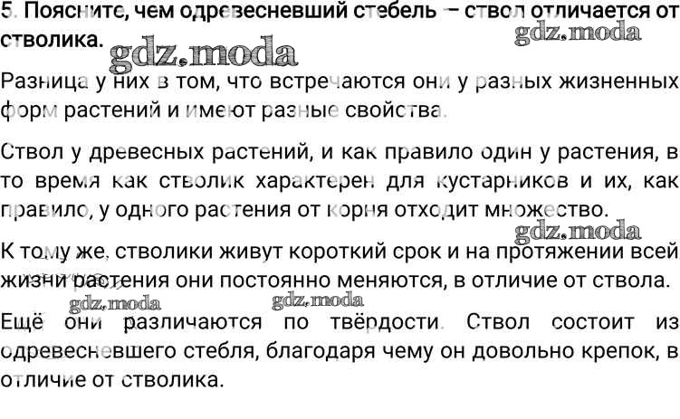 ГДЗ решение к заданию № 5 Биология 6 класс Пономарева И.Н. Вентана-граф 2019 ФГОС бесплатно на гдз.мода!
