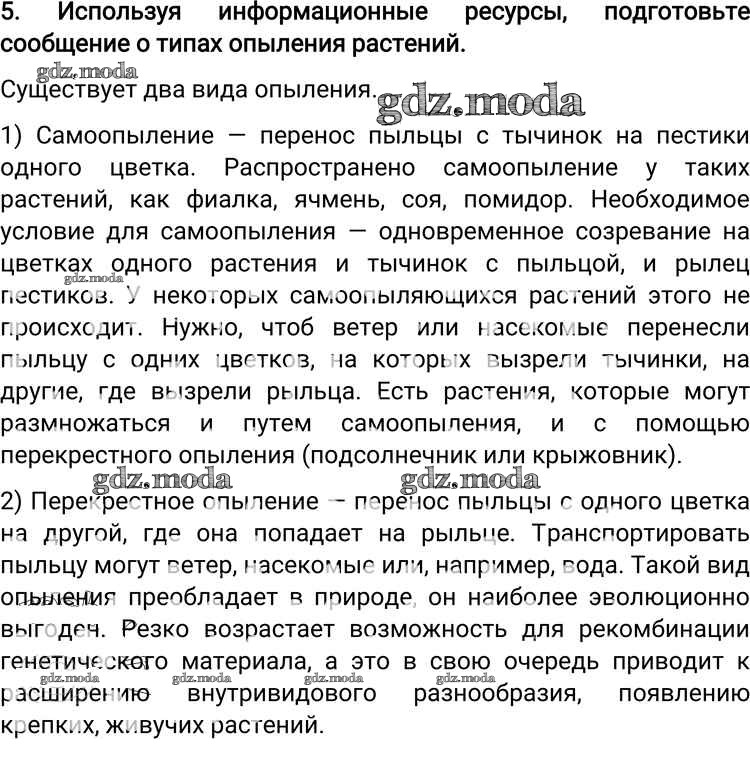 ГДЗ решение к заданию № 5 Биология 6 класс Пономарева И.Н. Вентана-граф 2019 ФГОС бесплатно на гдз.мода!