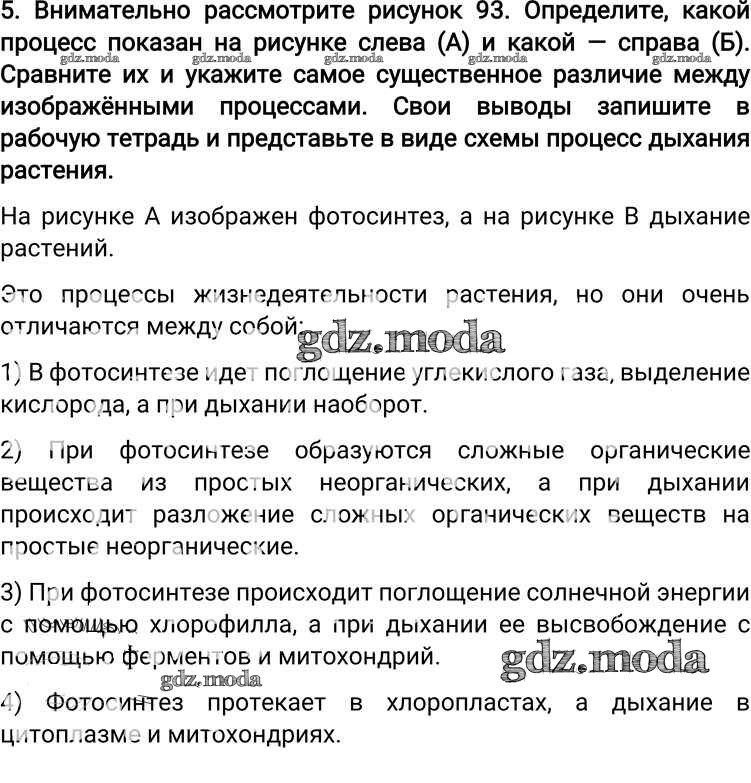 ГДЗ решение к заданию № 5 Биология 6 класс Пономарева И.Н. Вентана-граф 2019 ФГОС бесплатно на гдз.мода!