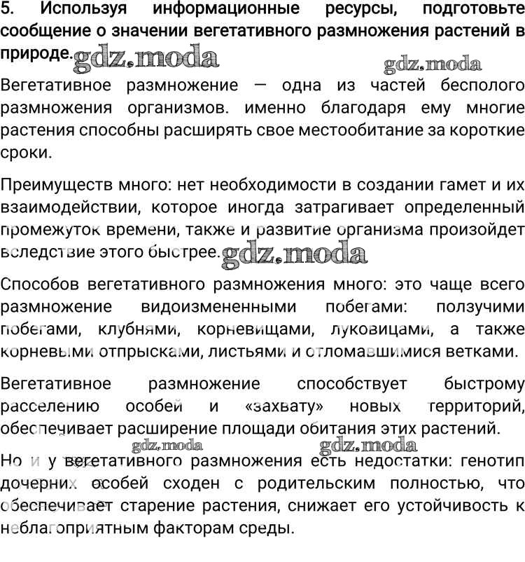 ОТВЕТ на задание № 5 Учебник по Биологии 6 класс Пономарева Алгоритм успеха