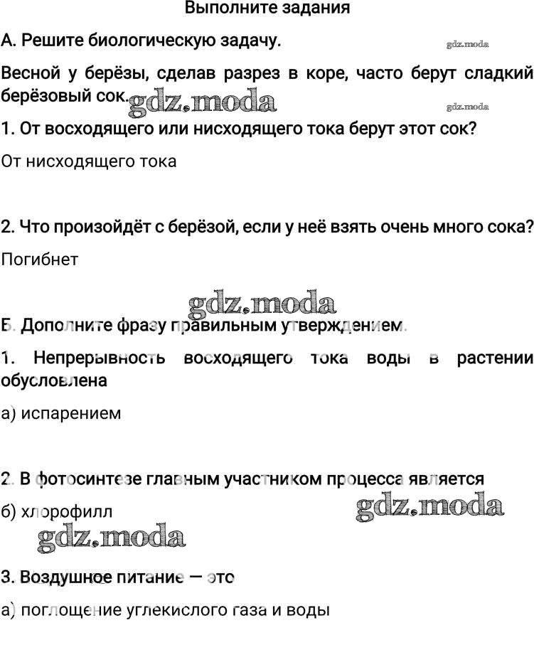 ГДЗ решение к заданию № Тестовые задания Биология 6 класс Пономарева И.Н. Вентана-граф 2019 ФГОС бесплатно на гдз.мода!