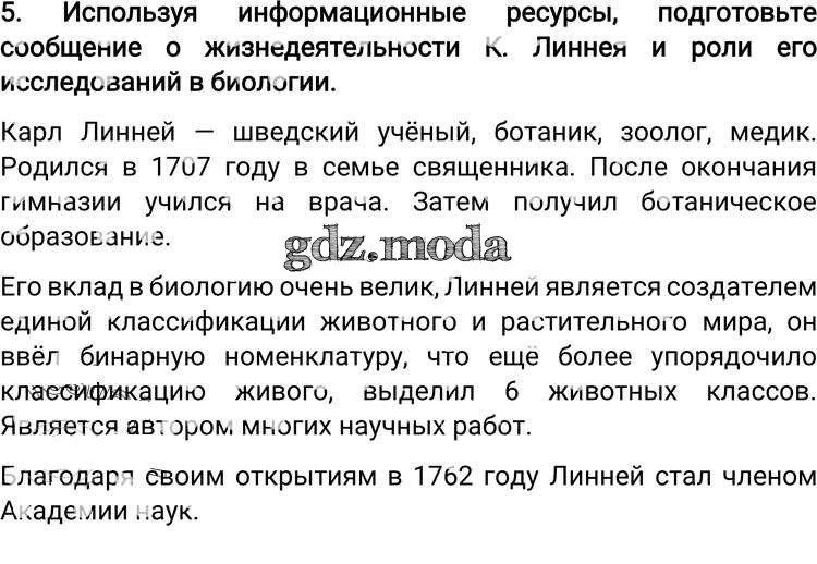 ГДЗ решение к заданию № 5 Биология 6 класс Пономарева И.Н. Вентана-граф 2019 ФГОС бесплатно на гдз.мода!