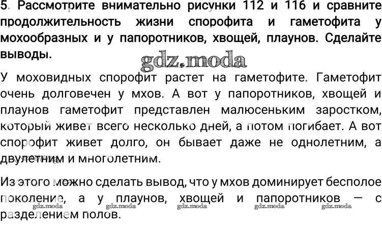 ГДЗ решение к заданию № 5 Биология 6 класс Пономарева И.Н. Вентана-граф 2019 ФГОС бесплатно на гдз.мода!
