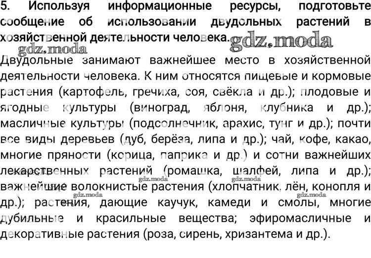 ГДЗ решение к заданию № 5 Биология 6 класс Пономарева И.Н. Вентана-граф 2019 ФГОС бесплатно на гдз.мода!