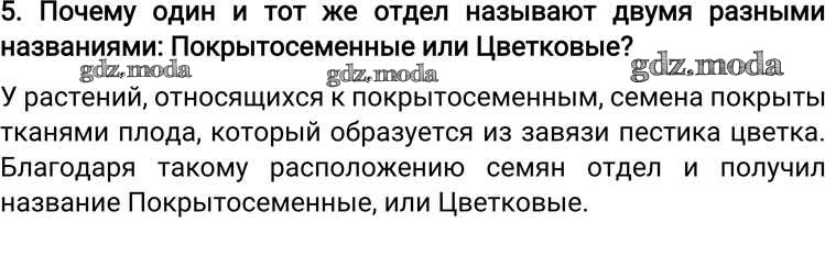 ГДЗ решение к заданию № 5 Биология 6 класс Пономарева И.Н. Вентана-граф 2019 ФГОС бесплатно на гдз.мода!