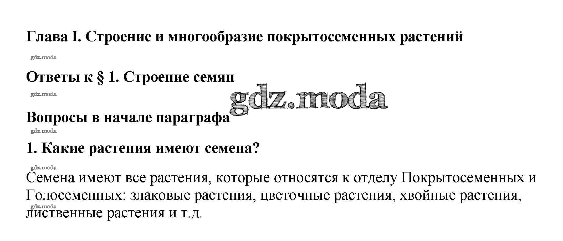 ГДЗ решение к заданию № 1 Биология 6 класс Многообразие покрытосеменных растений Пасечник В.В. Дрофа 2014 ФГОС бесплатно на гдз.мода!