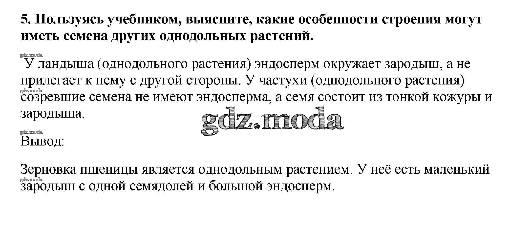 ГДЗ решение к заданию № 5 Биология 6 класс Многообразие покрытосеменных растений Пасечник В.В. Дрофа 2014 ФГОС бесплатно на гдз.мода!