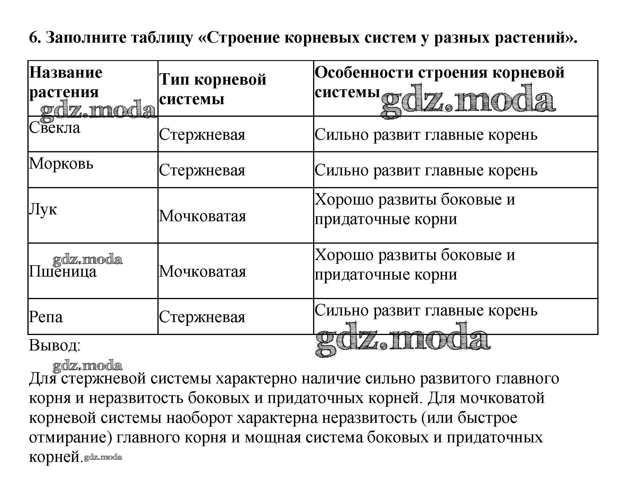 ГДЗ решение к заданию № 6 Биология 6 класс Многообразие покрытосеменных растений Пасечник В.В. Дрофа 2014 ФГОС бесплатно на гдз.мода!