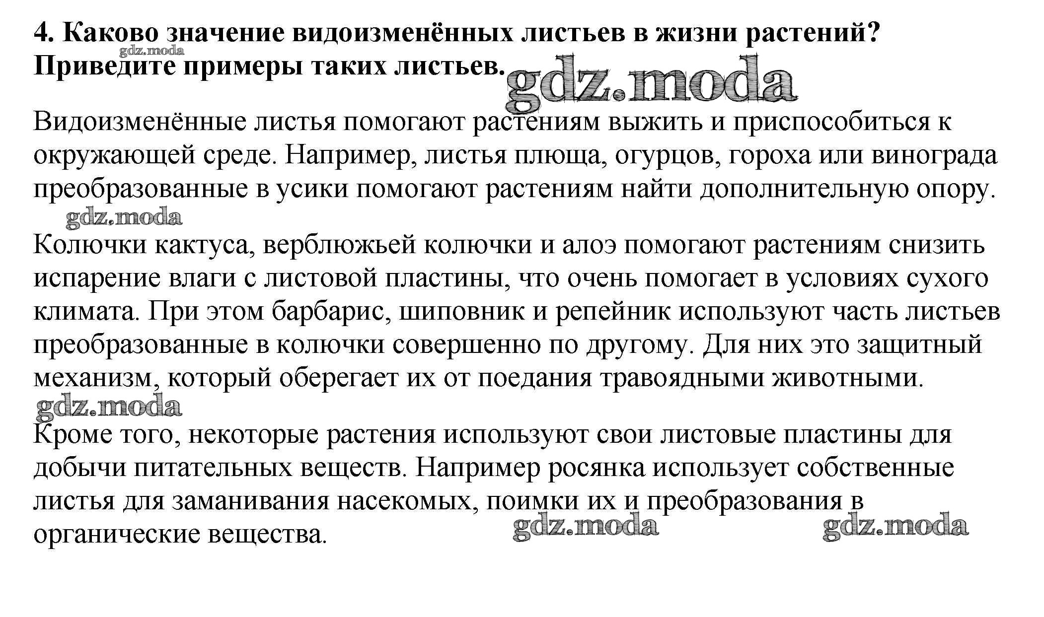 ГДЗ решение к заданию № 4 Биология 6 класс Многообразие покрытосеменных растений Пасечник В.В. Дрофа 2014 ФГОС бесплатно на гдз.мода!