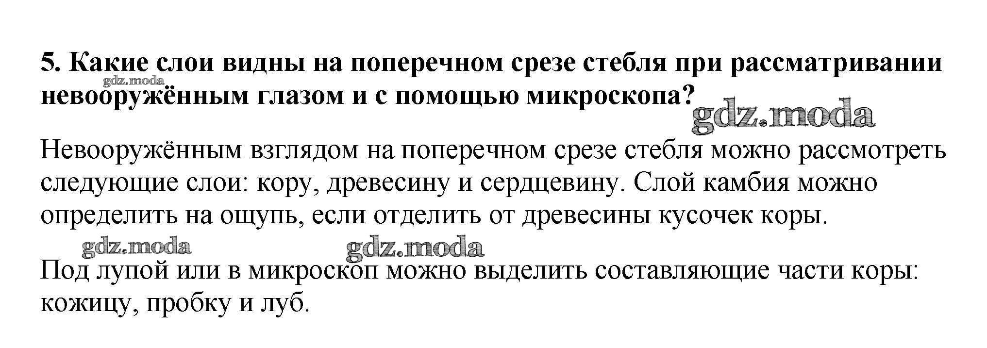 ГДЗ решение к заданию № 5 Биология 6 класс Многообразие покрытосеменных растений Пасечник В.В. Дрофа 2014 ФГОС бесплатно на гдз.мода!