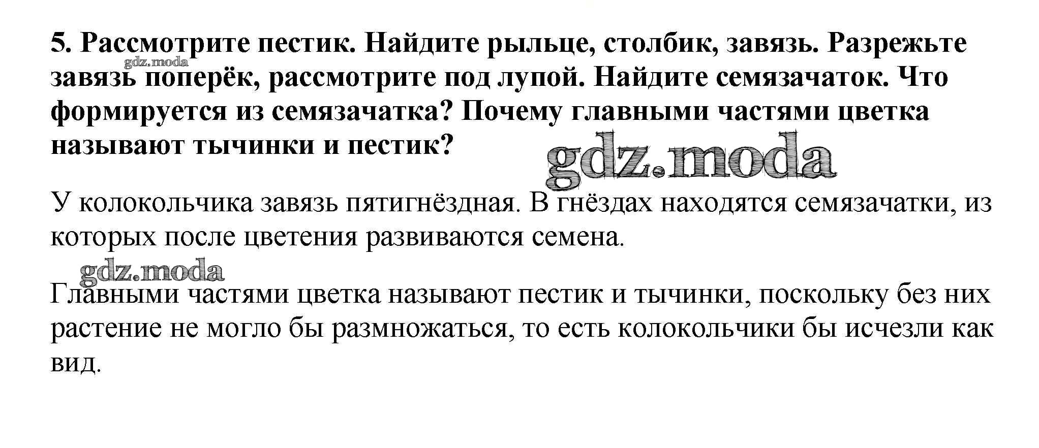 ГДЗ решение к заданию № 5 Биология 6 класс Многообразие покрытосеменных растений Пасечник В.В. Дрофа 2014 ФГОС бесплатно на гдз.мода!