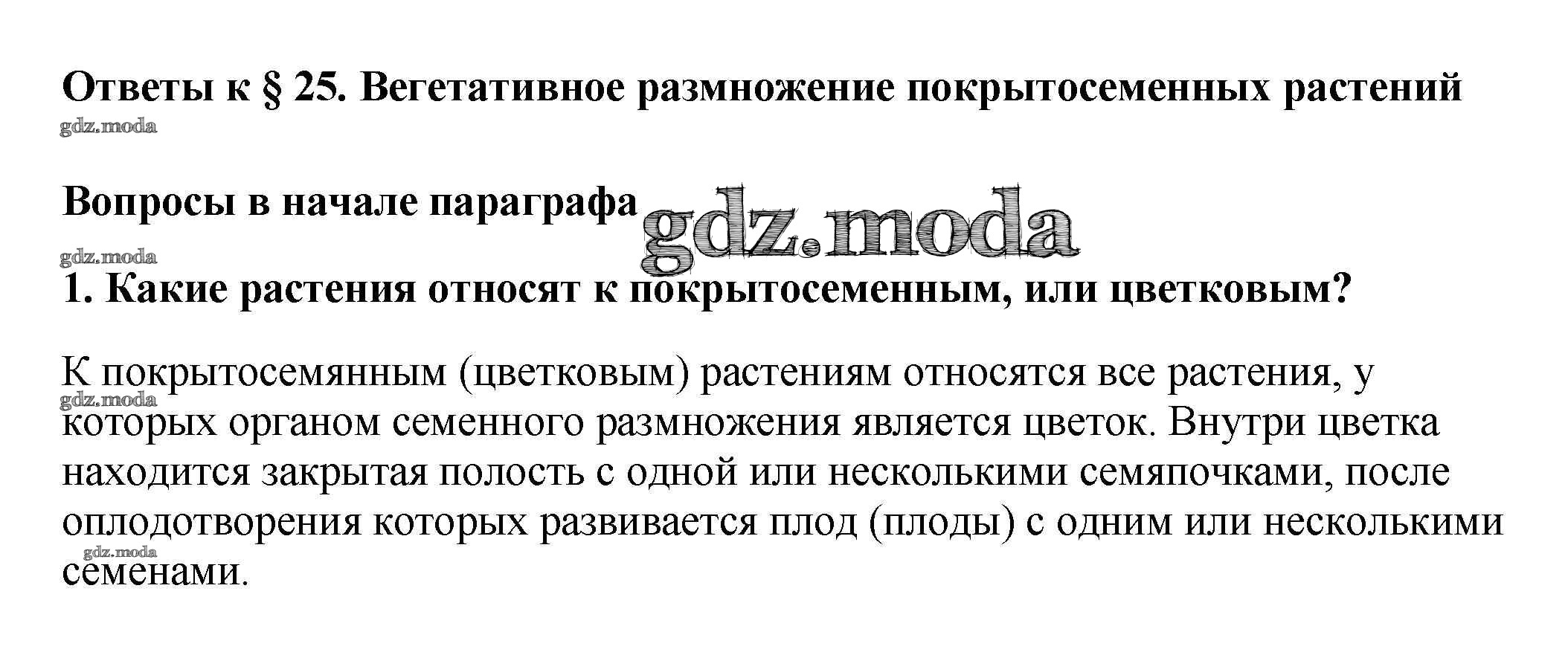 ГДЗ решение к заданию № 1 Биология 6 класс Многообразие покрытосеменных растений Пасечник В.В. Дрофа 2014 ФГОС бесплатно на гдз.мода!