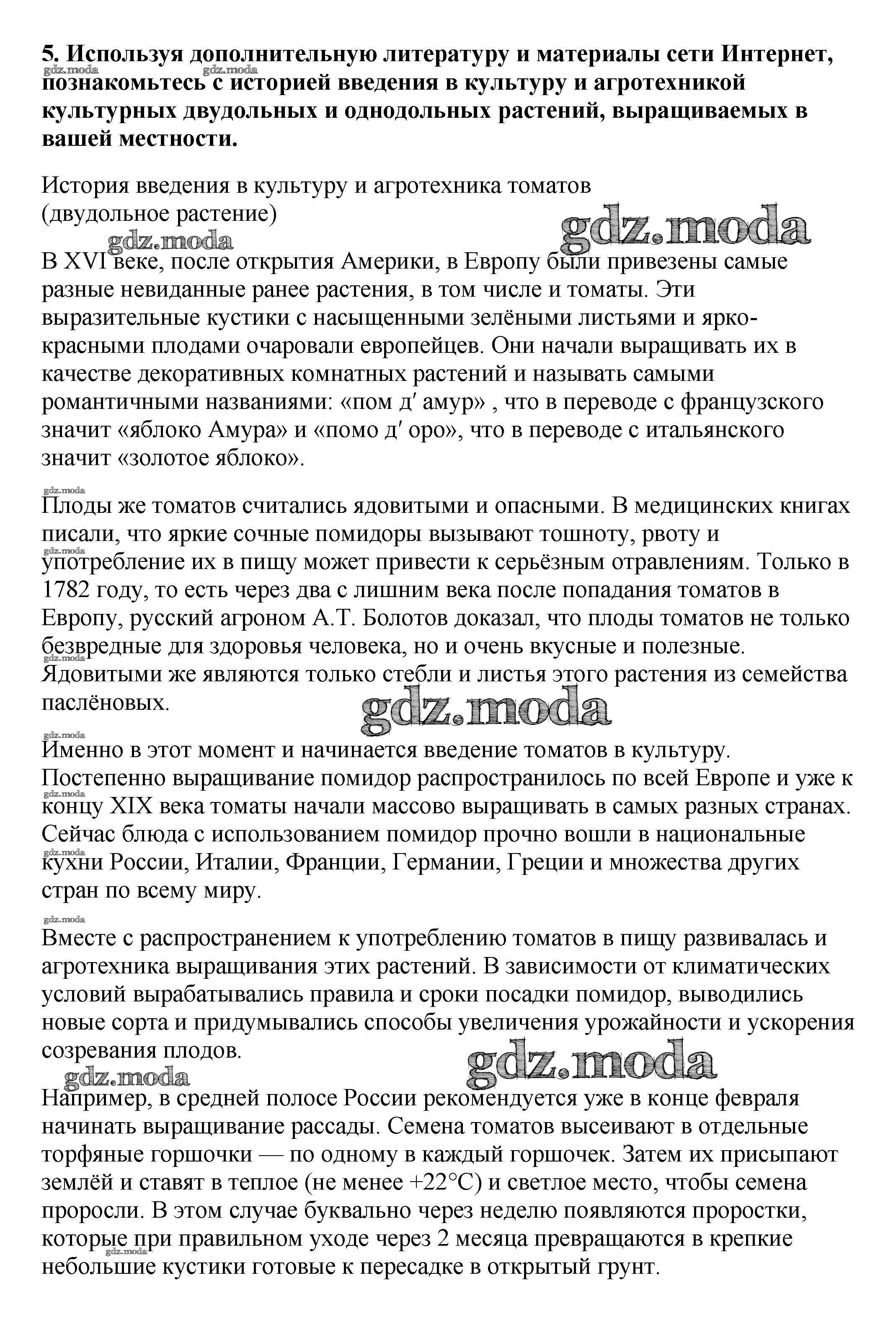 ГДЗ решение к заданию № 5 Биология 6 класс Многообразие покрытосеменных растений Пасечник В.В. Дрофа 2014 ФГОС бесплатно на гдз.мода!