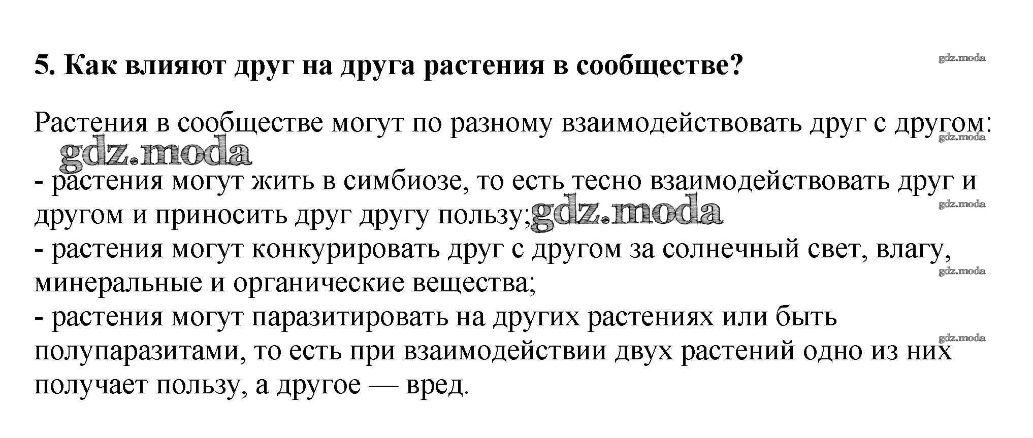 ГДЗ решение к заданию № 5 Биология 6 класс Многообразие покрытосеменных растений Пасечник В.В. Дрофа 2014 ФГОС бесплатно на гдз.мода!