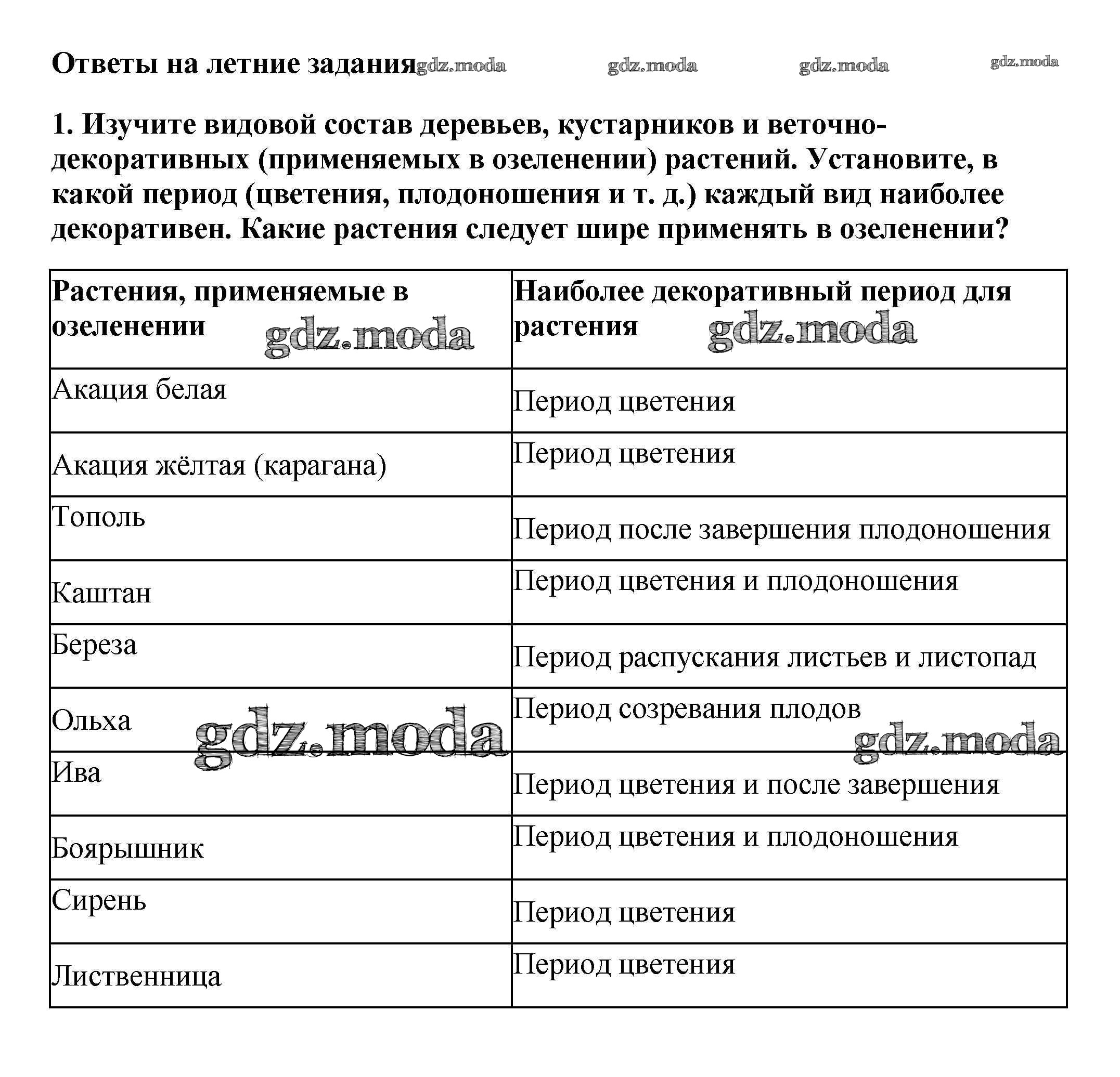 ГДЗ решение к заданию № 1 Биология 6 класс Многообразие покрытосеменных растений Пасечник В.В. Дрофа 2014 ФГОС бесплатно на гдз.мода!